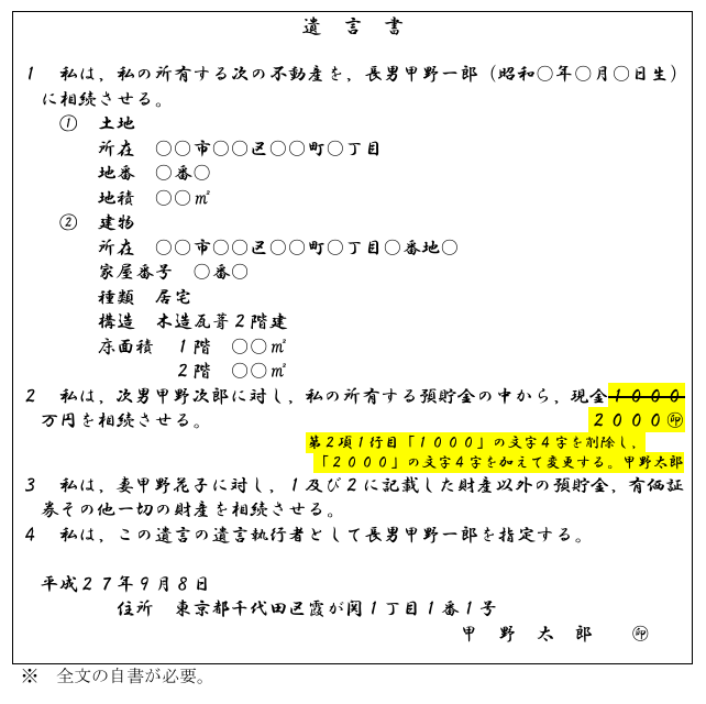 【自筆証書遺言の作成例】